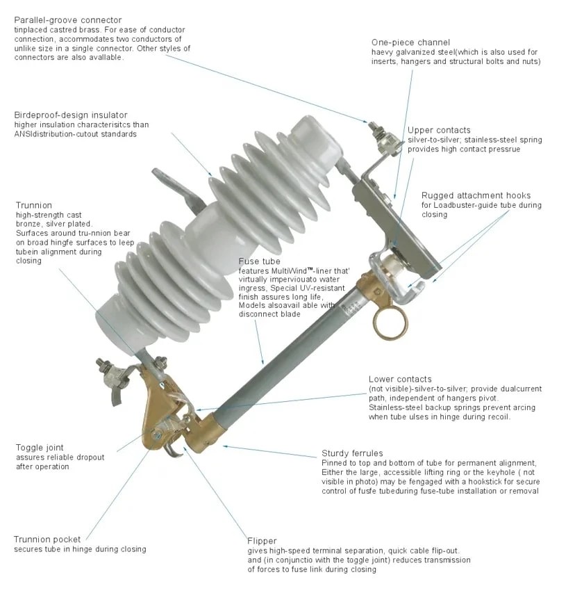 Dropout Fuse CutoutsAçıqlama kəsikləri əsas xüsusiyyətə malikdir.Onlar görünən göstərici verə bilər.Bu göstərici qoruyucu elementi işləyərkən görünür.