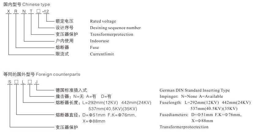 Çində peşəkar Yüksək Gərginlikli Sigorta istehsalçısı və təchizatçısı olaraq, Comewill sizə 50Hz güc tezliyi və nominal gərginlikləri 3.6kV, 7.2kV, 24kV, 40.5k olan qapalı sistemlər üçün uyğun olan yüksək gərginlikli qoruyucu XRNT PT Cərəyanı məhdudlaşdıran qoruyucu təqdim etmək istər. digər keçid qurğuları (məsələn, yük açarları və vakuum kontaktorları) ilə birlikdə istifadə edildikdə, güc transformatorları və digər elektrik avadanlıqları üçün dövrələrin kəsilməsindən qorunma təmin edir. Bundan əlavə, o, həmçinin yüksək gərginlikli paylayıcı şkaflar, üzük əsas blokları və yüksək aşağı gərginlikli prefabrik transformator yarımstansiyaları üçün vacib aksesuardır.